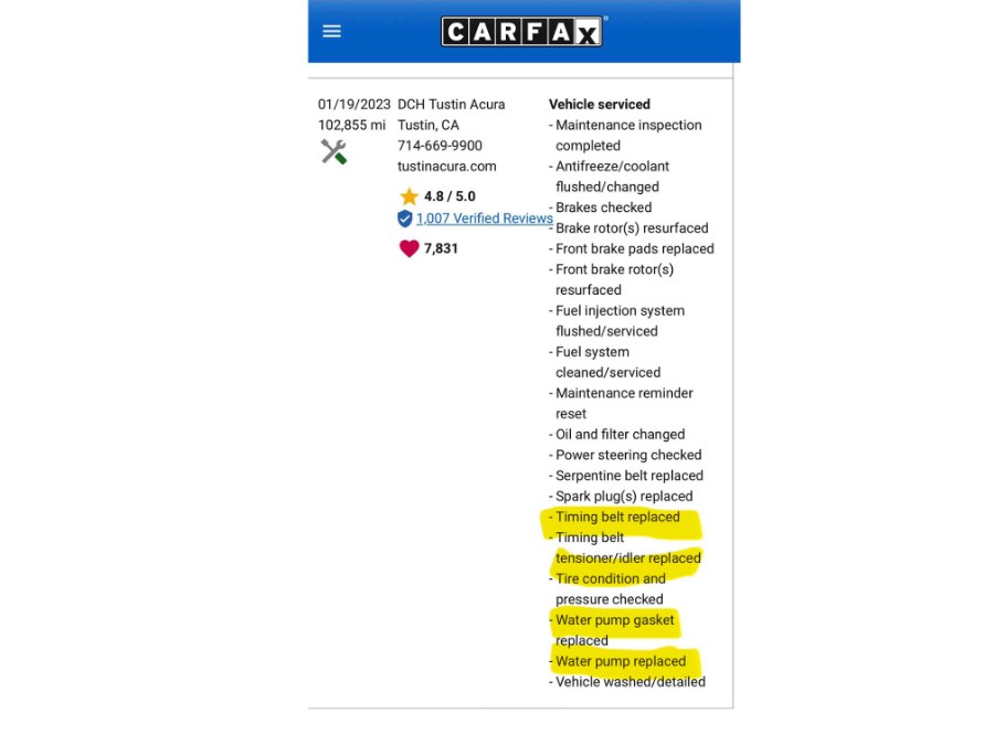 - TIMING BELT/ WATER PUMP REPLACED